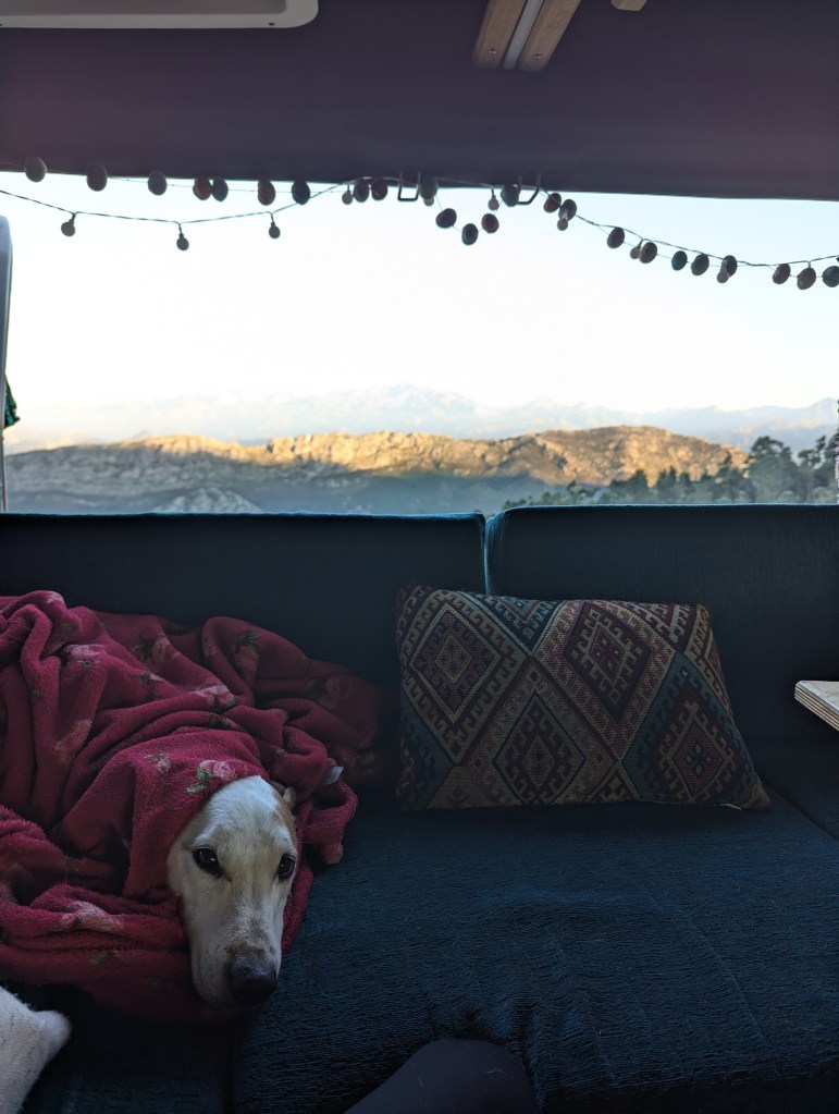 We’ve been living in our van full-time for 6 months now with our dog, Bruce. Before we committed him to a life on the road, we’d been away in our campervan with him a number of times, the longest trip being for 6 weeks. It’s not a decision we have taken lightly with regards to full-time vanlife with a dog. We would never have considered it if we knew he didn’t love it as much as we do! So here’s what I’d keep in mind if you’re thinking of living in a van with a dog.