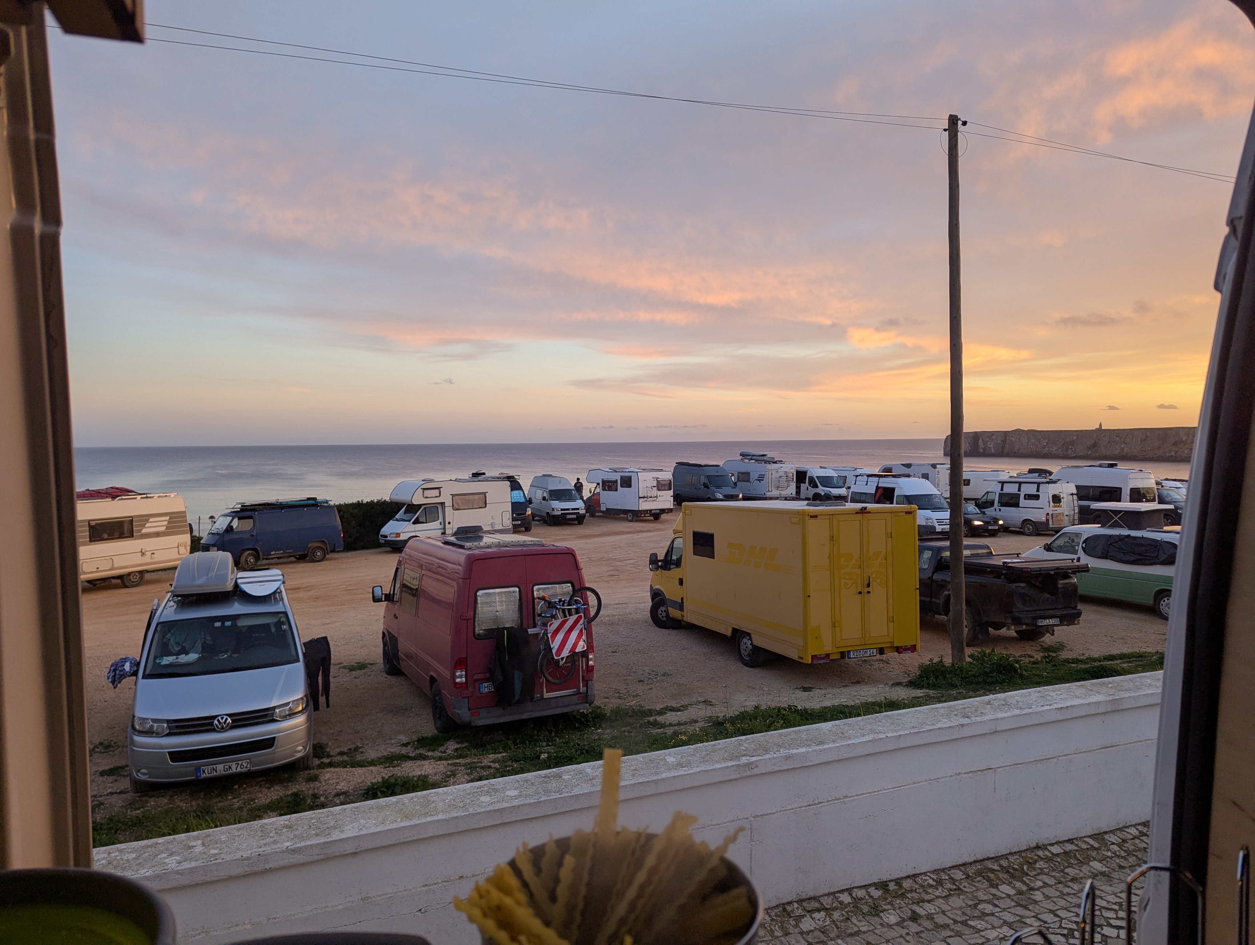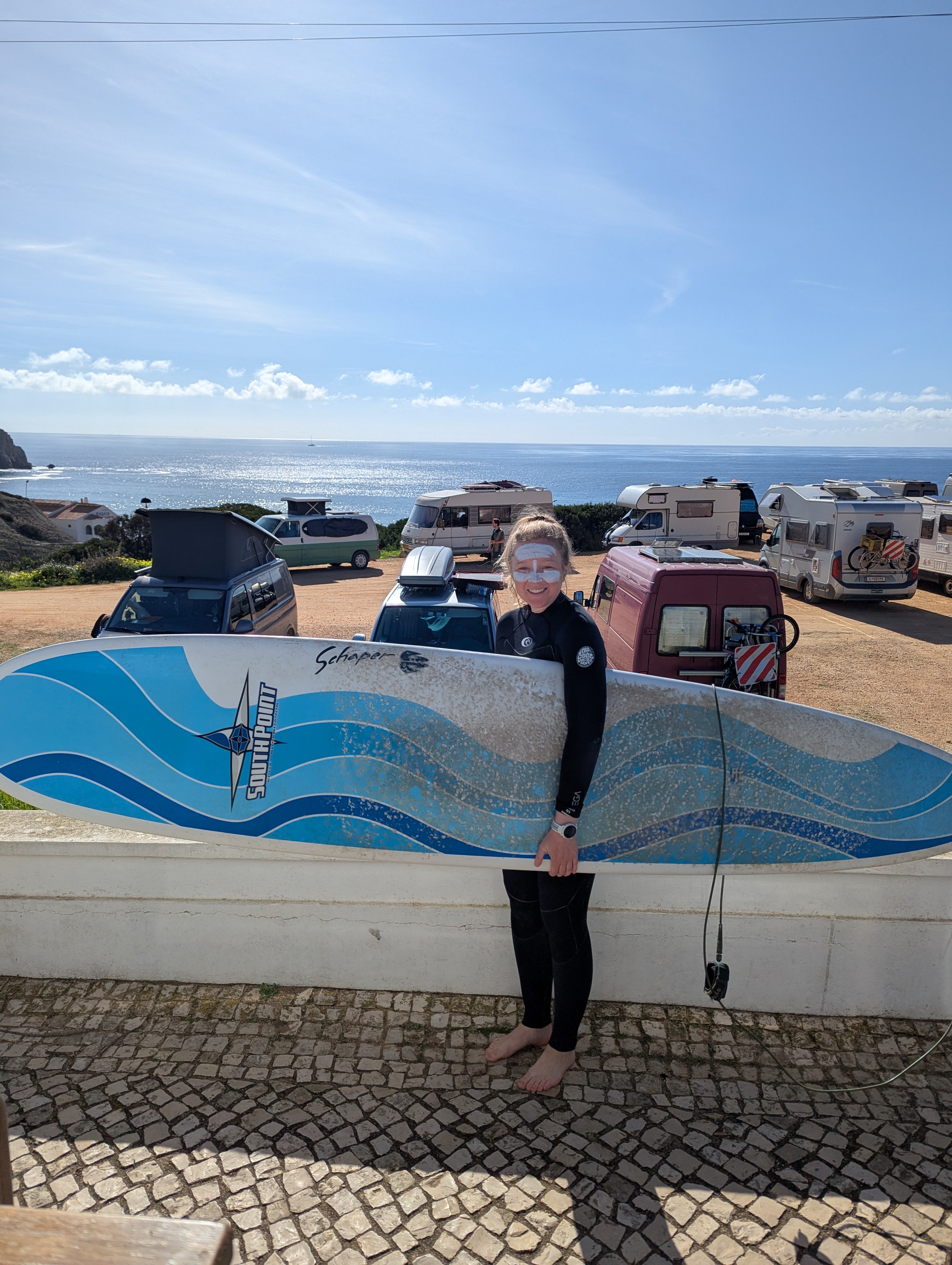 But then we made it to Sagres. Beautiful, wonderful Sagres. A surf town with really lovely cafes, dream parkups, and tons of beaches with good surf (although it was a bit too big for me!). So our hopes of vanlife in Portugal were restored.